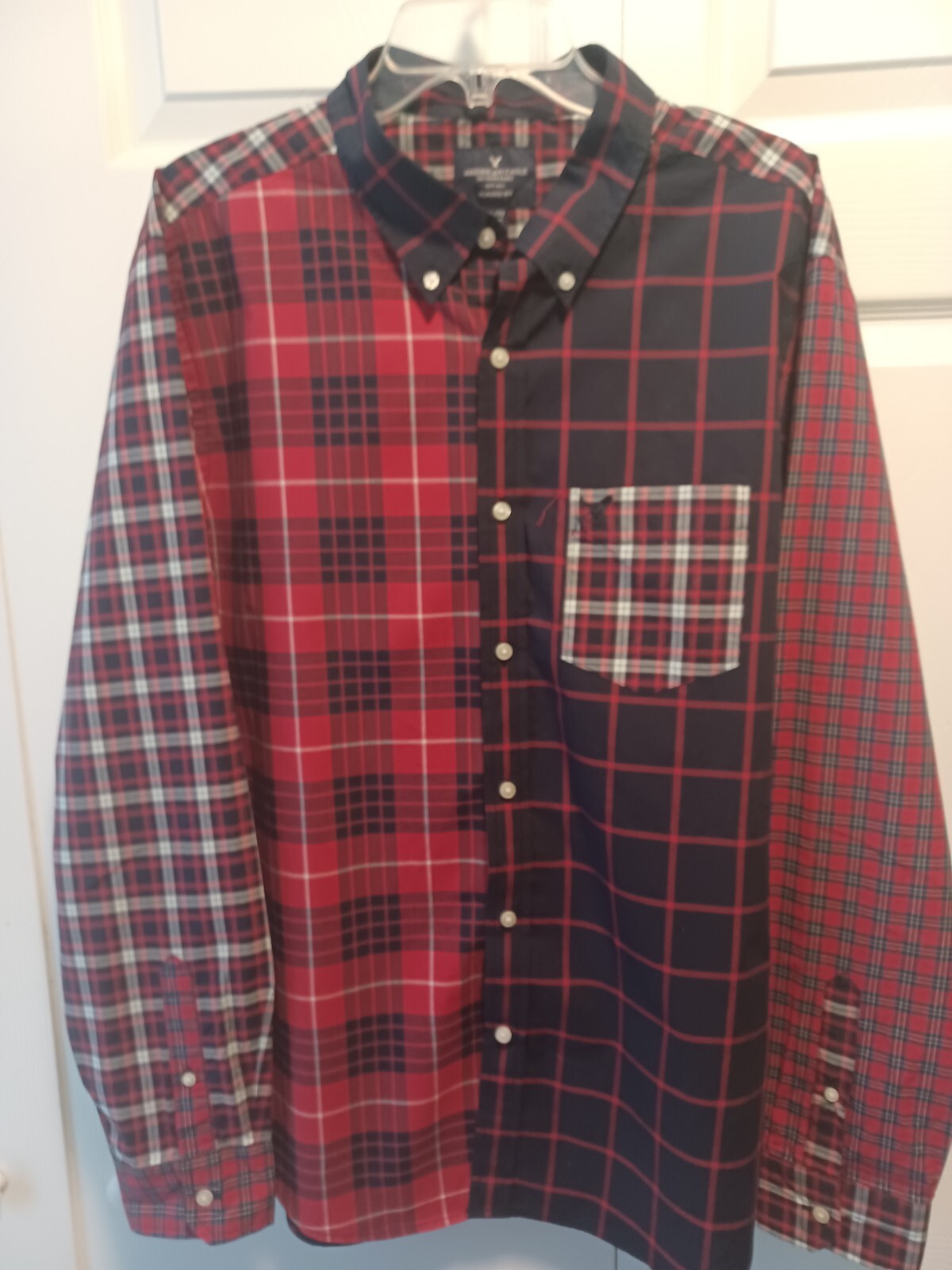 Mens American Eagle Outfitters Classic Fit Red Blue Patchwork Plaid Shirt Sz Xl Ebay
